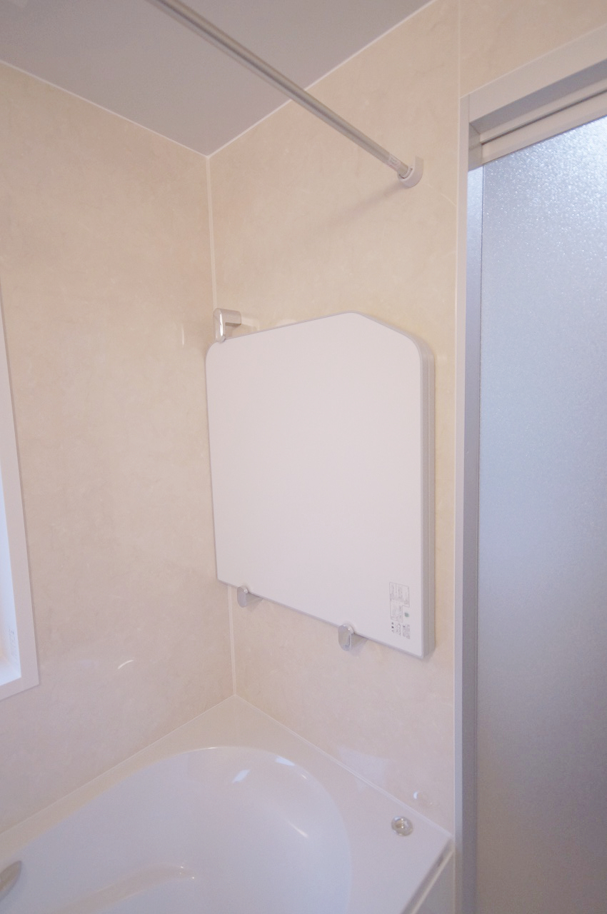 お湯が冷めにくい保温組フタ。 壁に掛けれるので入浴中邪魔になりません。