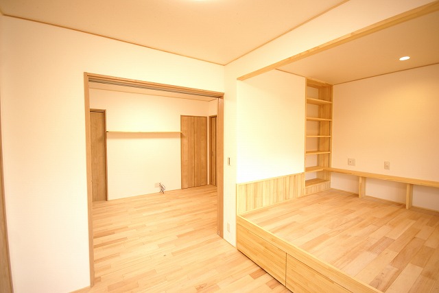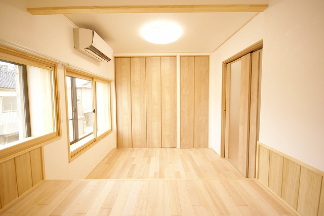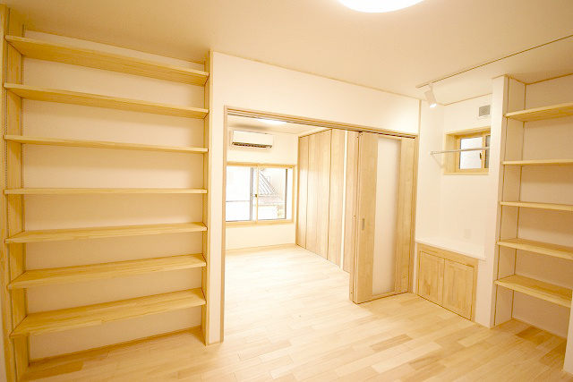 以前の和室の一部を残しつつも、木のぬくもりあふれる洋室に。収納スペースも考慮し住みやすい設計になっています。押入れのスペースも余すことなくトイレへ様変わり。