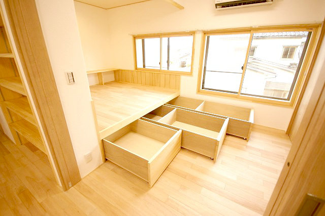 寝台の下にはたっぷり収納が入ります。