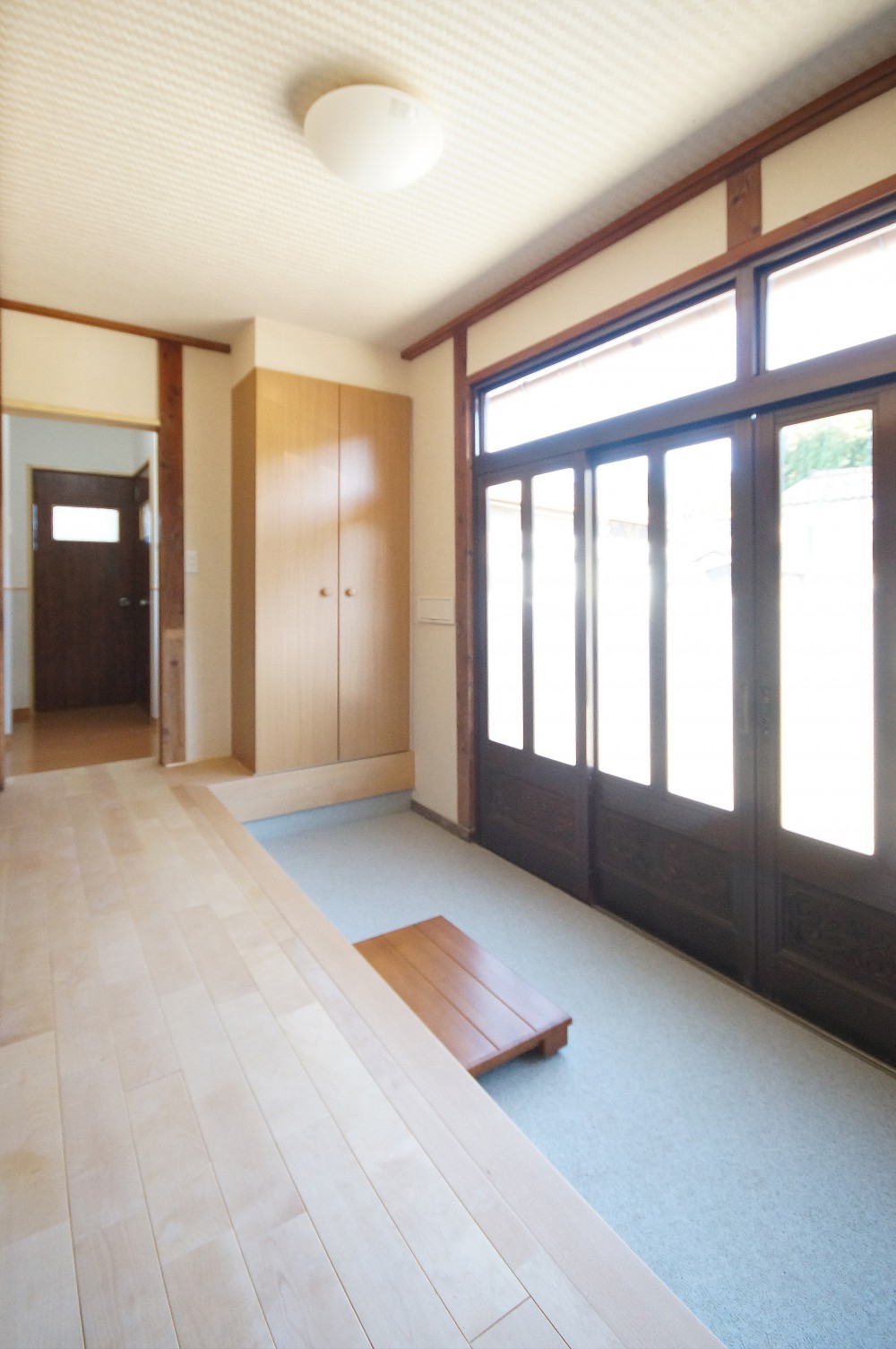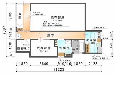 玄関、廊下、浴室、洗濯室のリフォームを行いました。玄関はクロスの貼り替え、床の貼り替え、下駄箱の新設などでリフレッシュ♪浴室はタイル貼りからユニットバスへと入替えました。毎日のお掃除がラクになりますね!洗面脱衣室は元の出窓の奥行きを活かして収納棚とカウンターを設置しました。勝手口兼ボイラー室は、洗濯室に生まれ変わりました!雨でも洗濯物が干せるよう、ホスクリーンを付けました。猫を飼っているM様。廊下はキッチンパネルを貼ってイタズラ防止に。