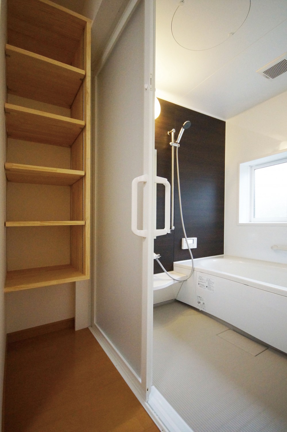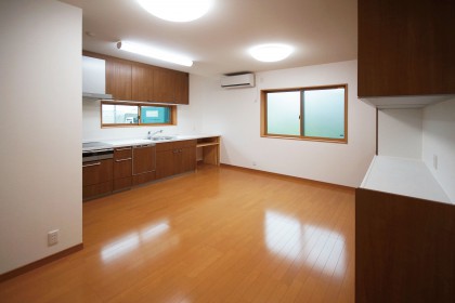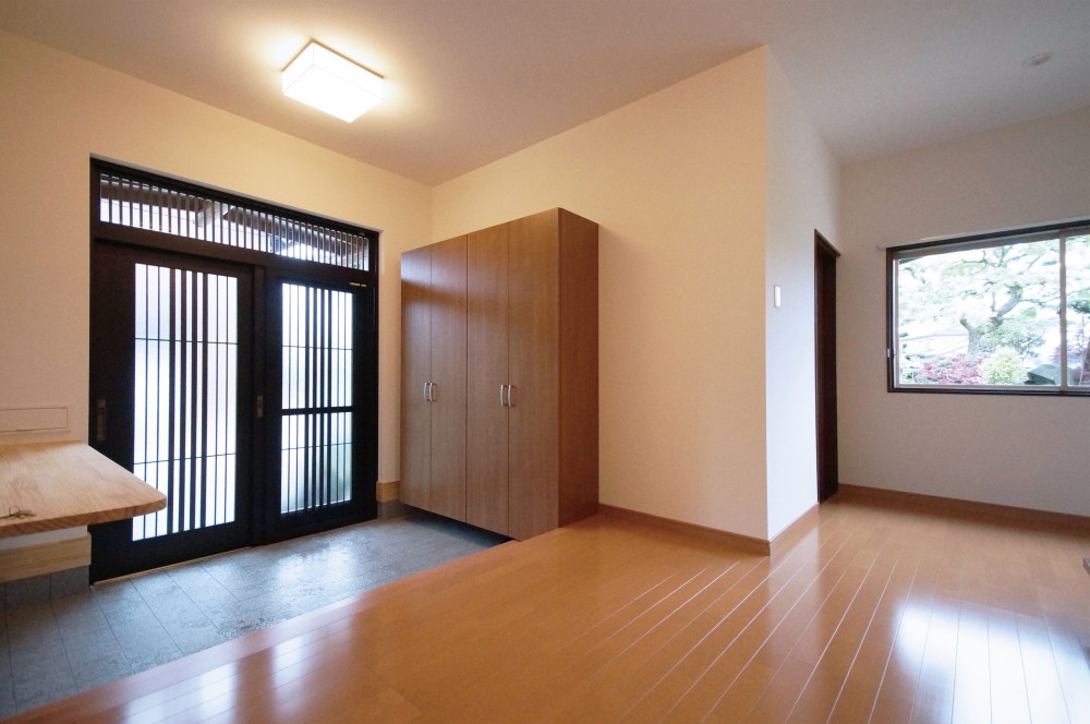 家の水廻り全てと、玄関廻りを改装しました。以前はかなり廊下の面積が広い間取りでしたが、改装の際、廊下スペースを減らすことで、ダイニングキッチンをLDKへと変身させました。また水廻りの位置を変え、空いたスペースに、食材をストックできる収納庫を設けました。動線に無駄のない、暮らしやすい空間に生まれ変わったと思います。