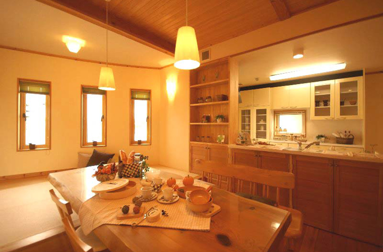 素足で無垢板の床を歩いても床暖房していないのにどこも変わらぬあたたかい温度と、木の香りを体感してください。