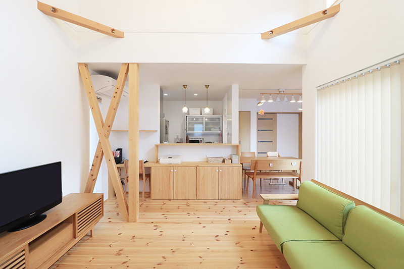 リビングの開放感がいいね!と好評です。自分たちも気に入っているところなので同じように思ってくれて嬉しいですね。